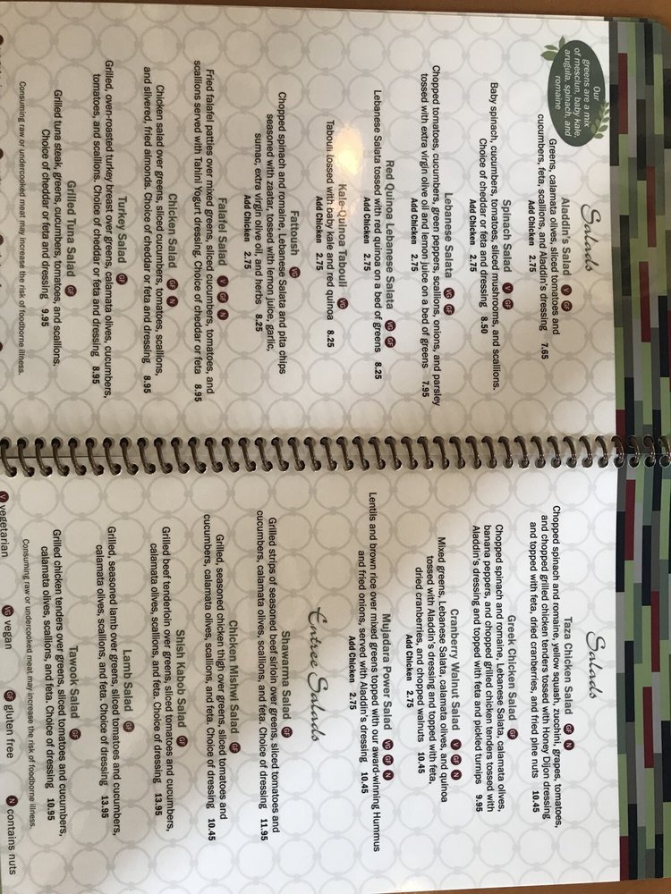 Signature dishes like the Aladdin's Favorite Combo—a generous serving of beef kafta, shish kabob, and shish tawook over a bed of basmati rice—are sure to satisfy any appetite. For a lighter bite, the Chicken Sambusek Plate offers curried chicken folded into flaky pita, served with fresh greens.